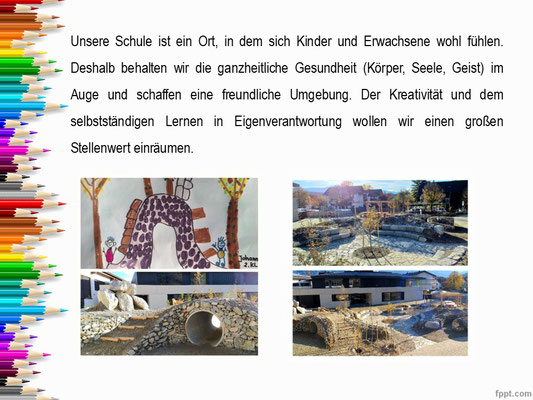 Das Fresco an der Volksschule, welches H. Pfalzer zeigt, stammt von Hubert Zanol, Neustift (1977). Im alten Schulhaus, welches 1897 erbaut worden war, fand ab 1970 der Kindergarten Platz.